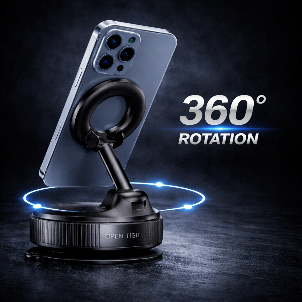 Den starka sugkoppen gör att den fäster på de flesta släta ytor som glas, plast, metall och instrumentpaneler.